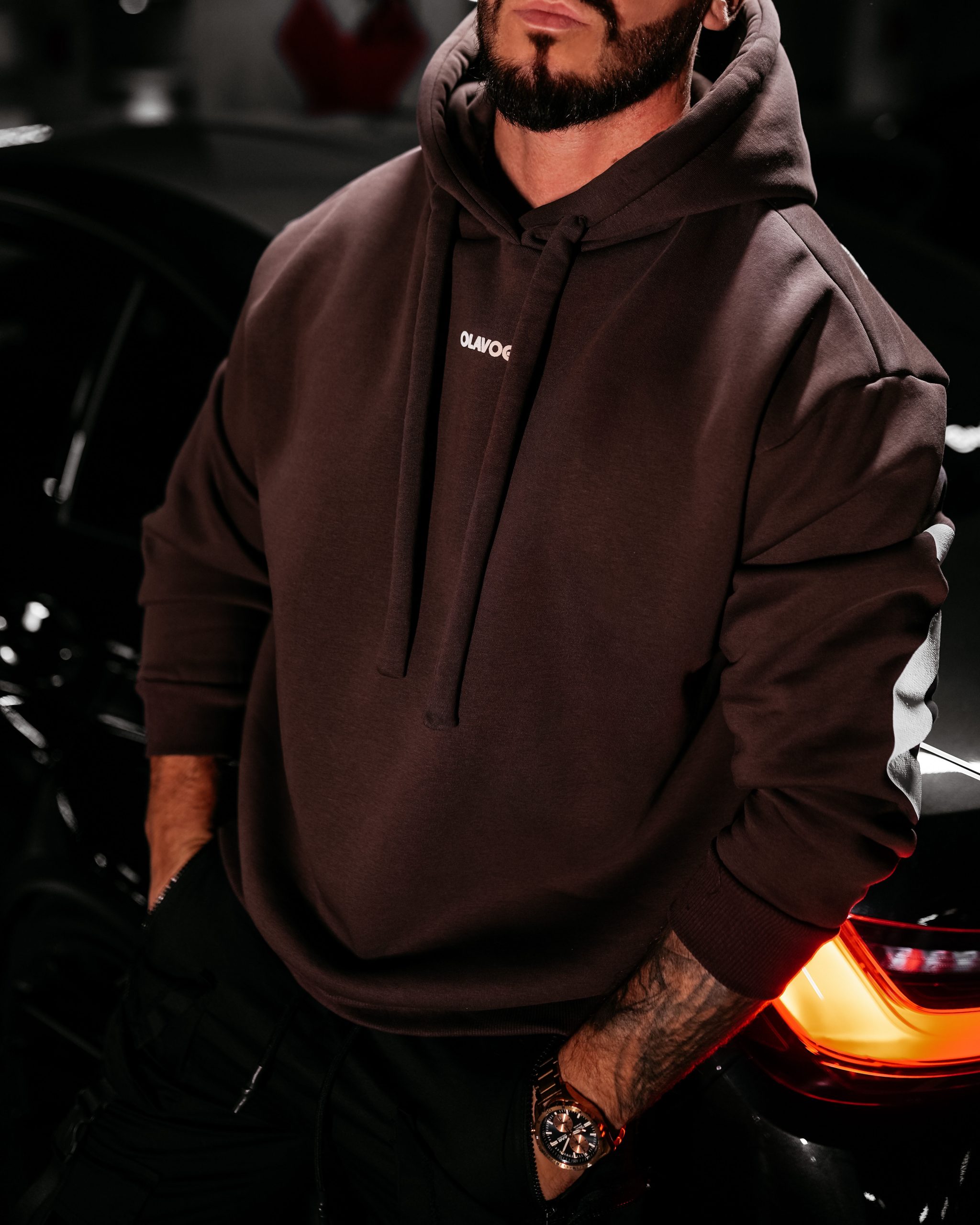 Miękka, oversize’owa bluza z obszernym kapturem i długimi troczkami. Wykonana z wysokiej jakości, przyjemnego w dotyku materiału. Z przodu minimalistyczne, wypukłe logo marki OLAVOGA. Tył zdobi duży, efektowny nadruk z rozbudowanym logotypem. Produkt dla Niej i dla Niego.