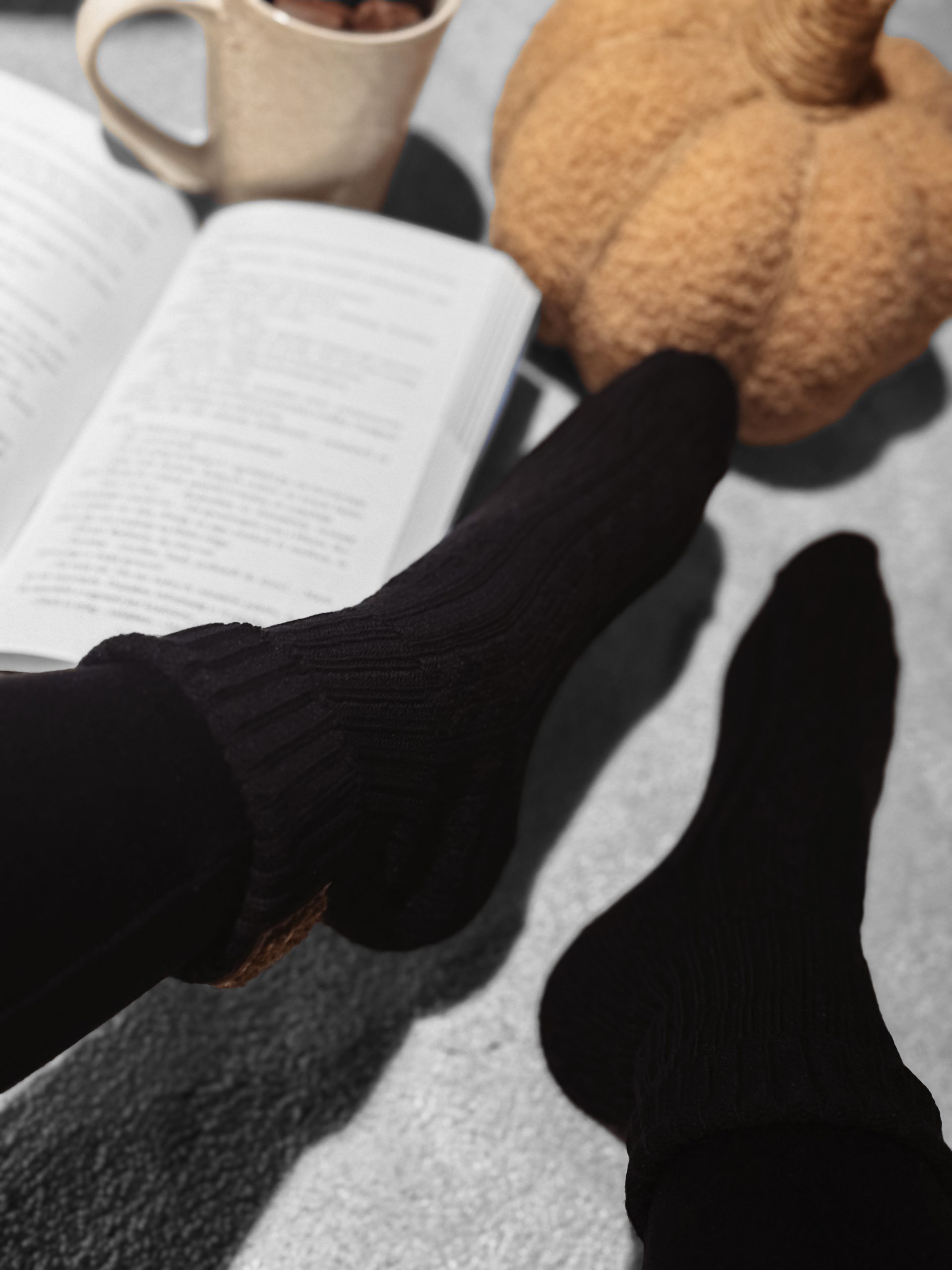 Długie skarpetki damskie wykonane z miękkiej, elastycznej dzianiny o prążkowanej strukturze. Na wywinięciu umieszczona jest naszywka z logo marki OLAVOGA.